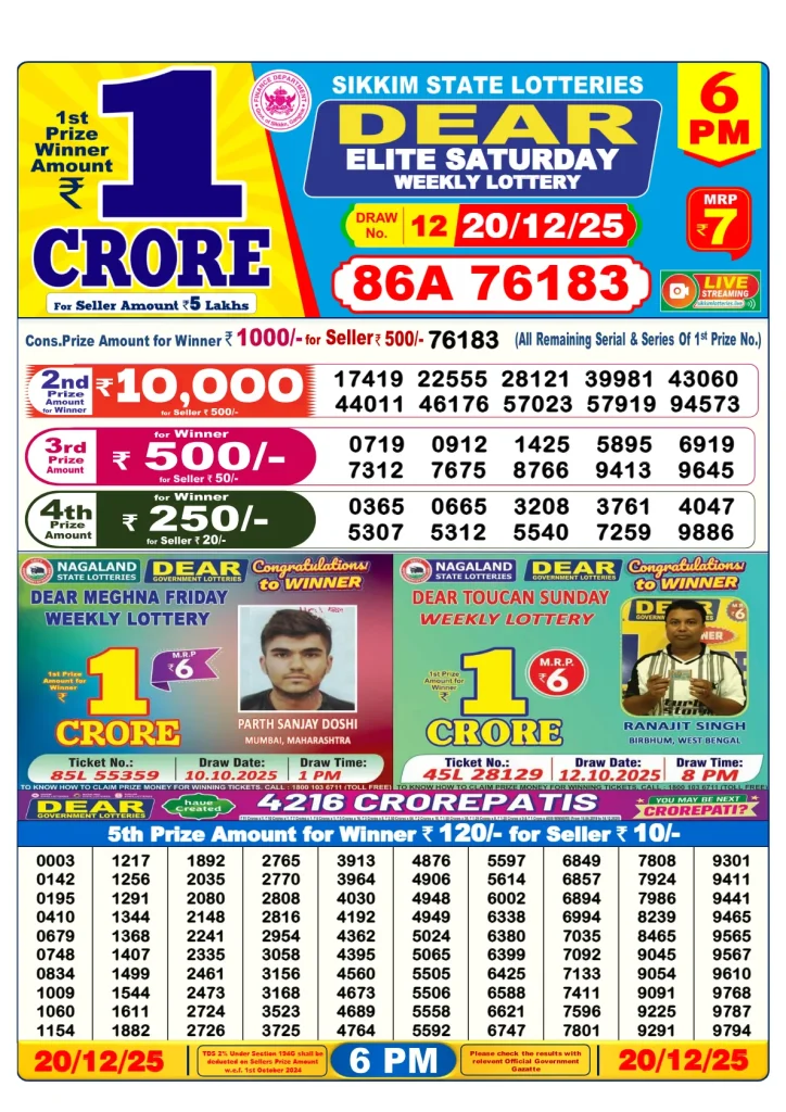 Dhankesari Result Lottery Sambad Today 20 December 2025