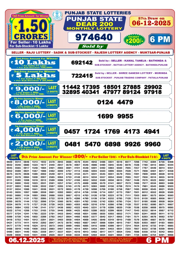 The Punjab State Dear 200 Monthly Lottery is a lottery scheme run by the Punjab State Lotteries Department. It is a monthly draw lottery, meaning the draw happens once a month.